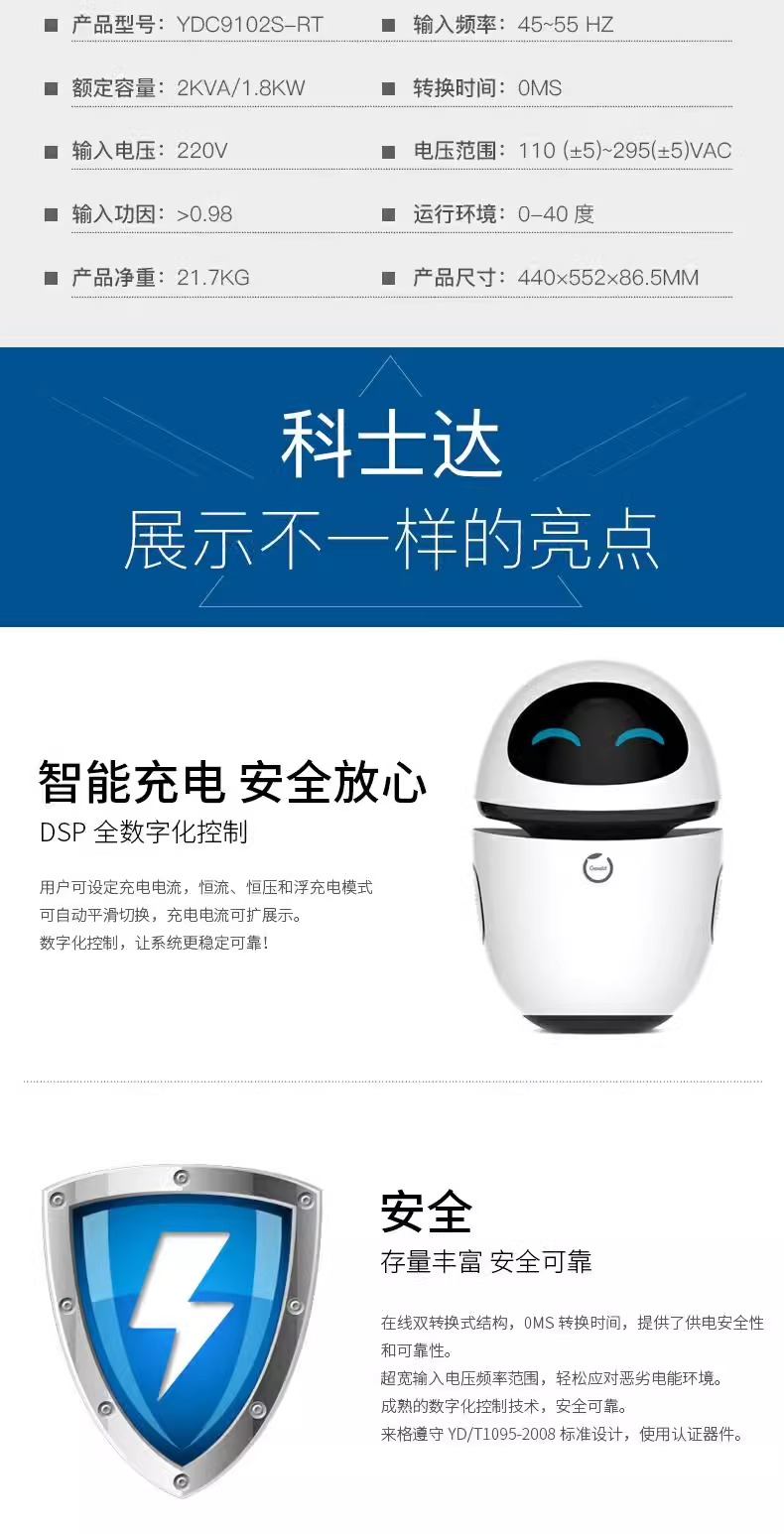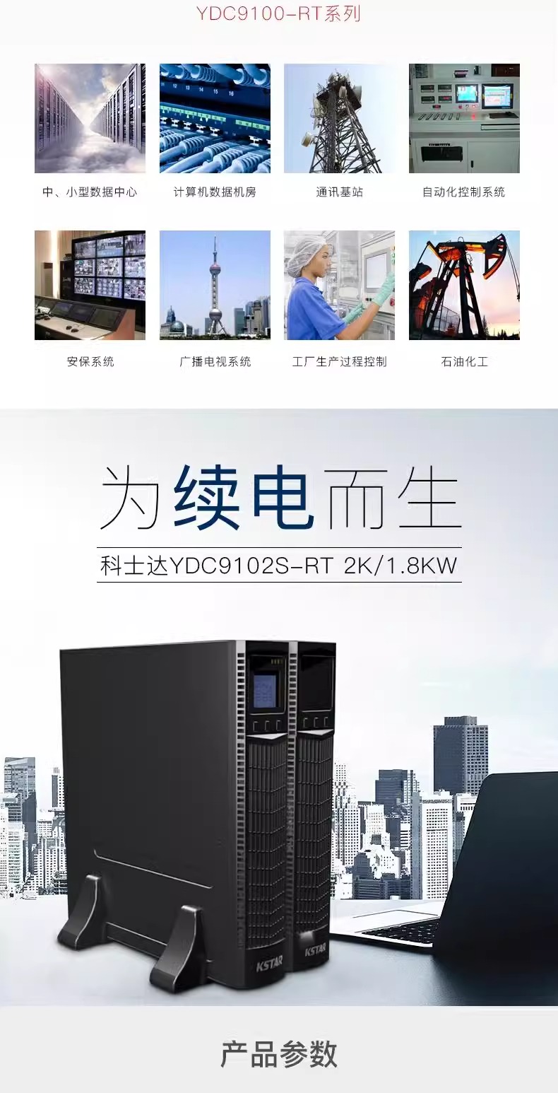 科·士達UPS不間斷電源YDC9102S-RT機架式內置電池